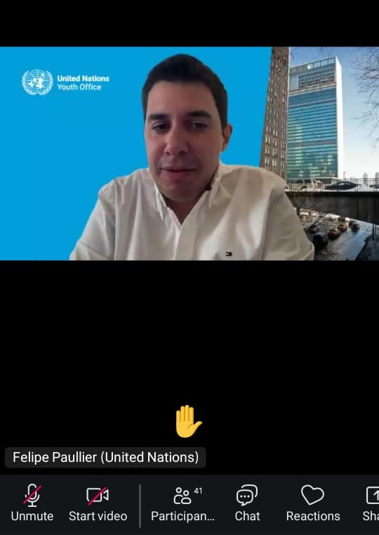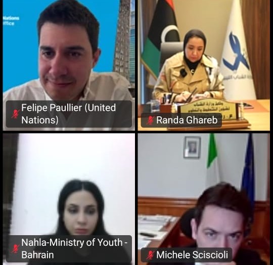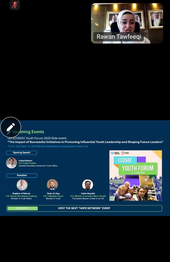 مندوباً عن وزير الشباب المهندس يزن الشديفات، شارك أمين عام وزارة الشباب بالوكالة الدكتور ياسين هليل، يوم أمس الثلاثاء، في الجلسة الحوارية التي عقدتها شبكة الأمل البحرينية، عبر تقنيات الاتصال المرئي، وذلك على هامش منتدى الشباب الذي ينظمه المجلس الاقتصادي والاجتماعي الدولي، بحضور وزيرة شؤون الشباب في مملكة البحرين روان توفيقي ومساعد الأمين العام للأمم المتحدة لشؤون الشباب فيليبي بوليه، وعدد من وزراء الشباب من الدول العربية والدولية، بالإضافة إلى أعضاء من شبكة الأمل.