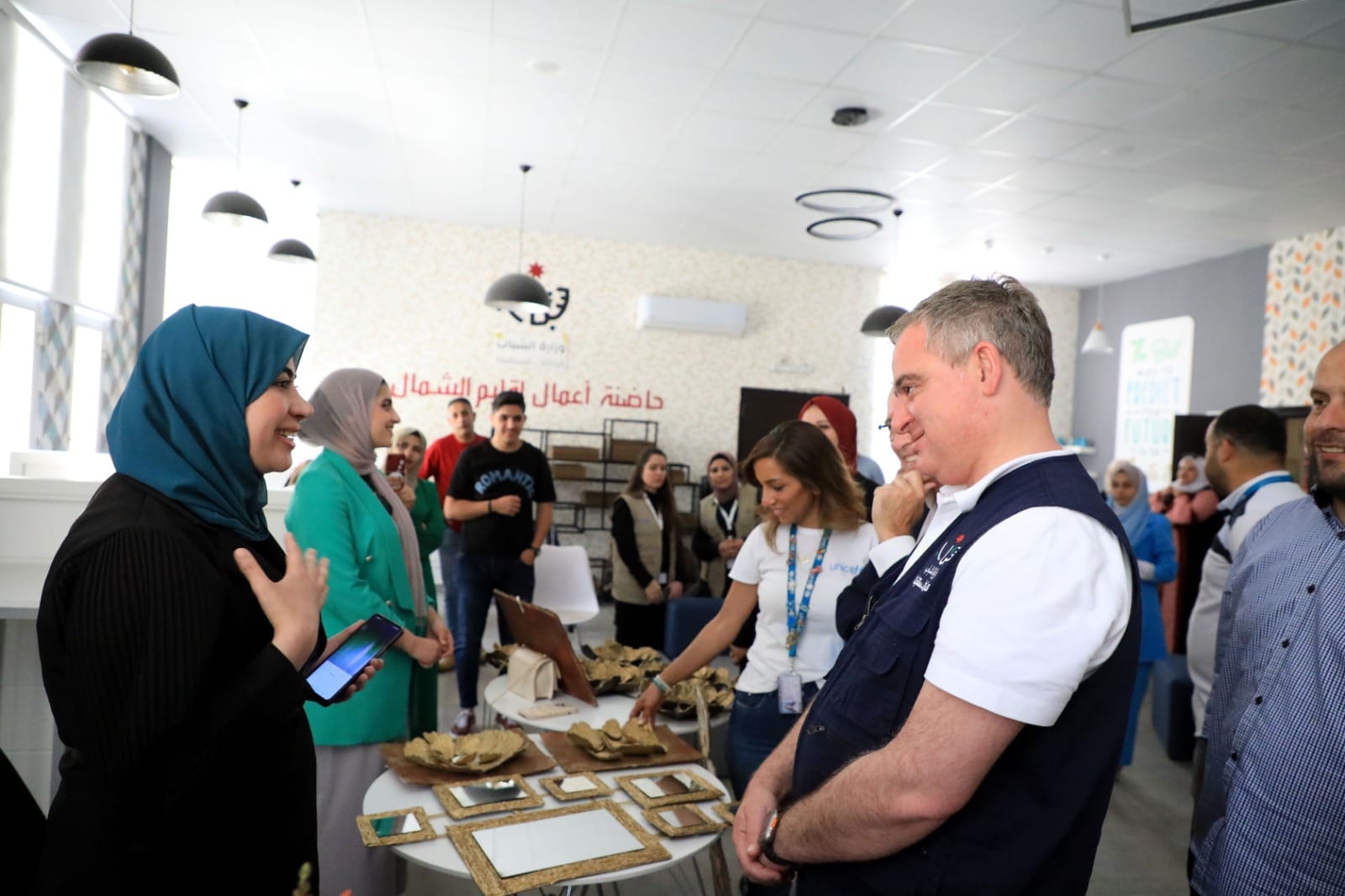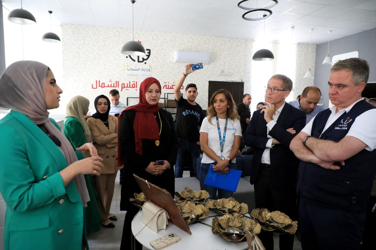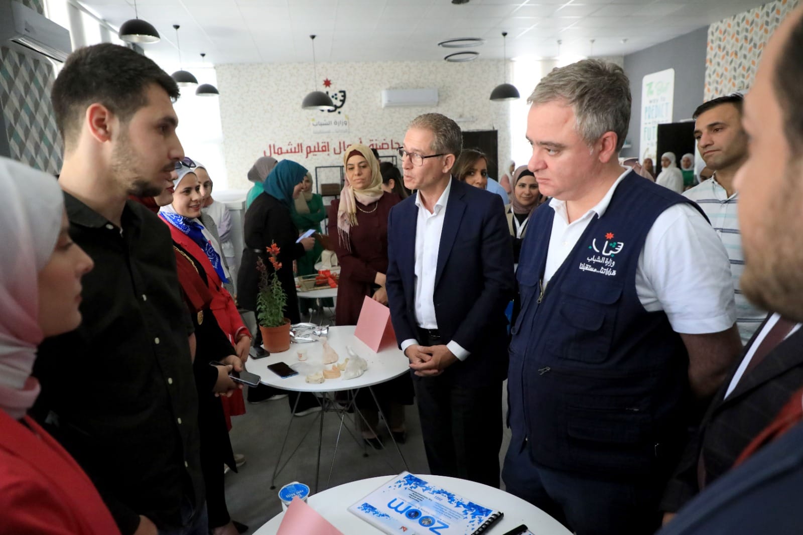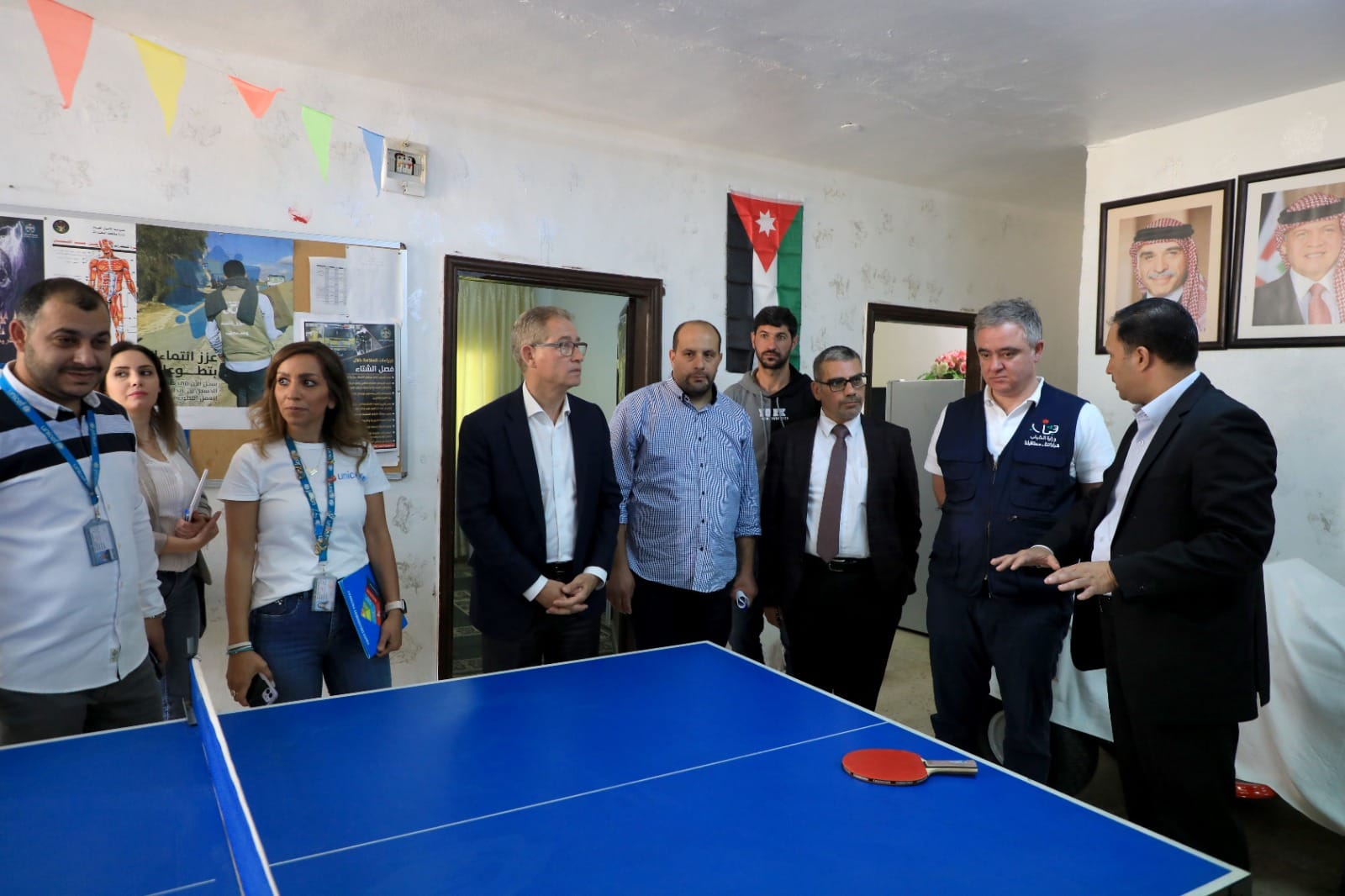 محمد النابلسي يرافقه ممثل منظمة الأمم المتحدة للطفولة في الاردن فيليب دوامل، البرامج الشبابية المشتركة التي تنفذها المراكز الشبابية في جرش وعجلون